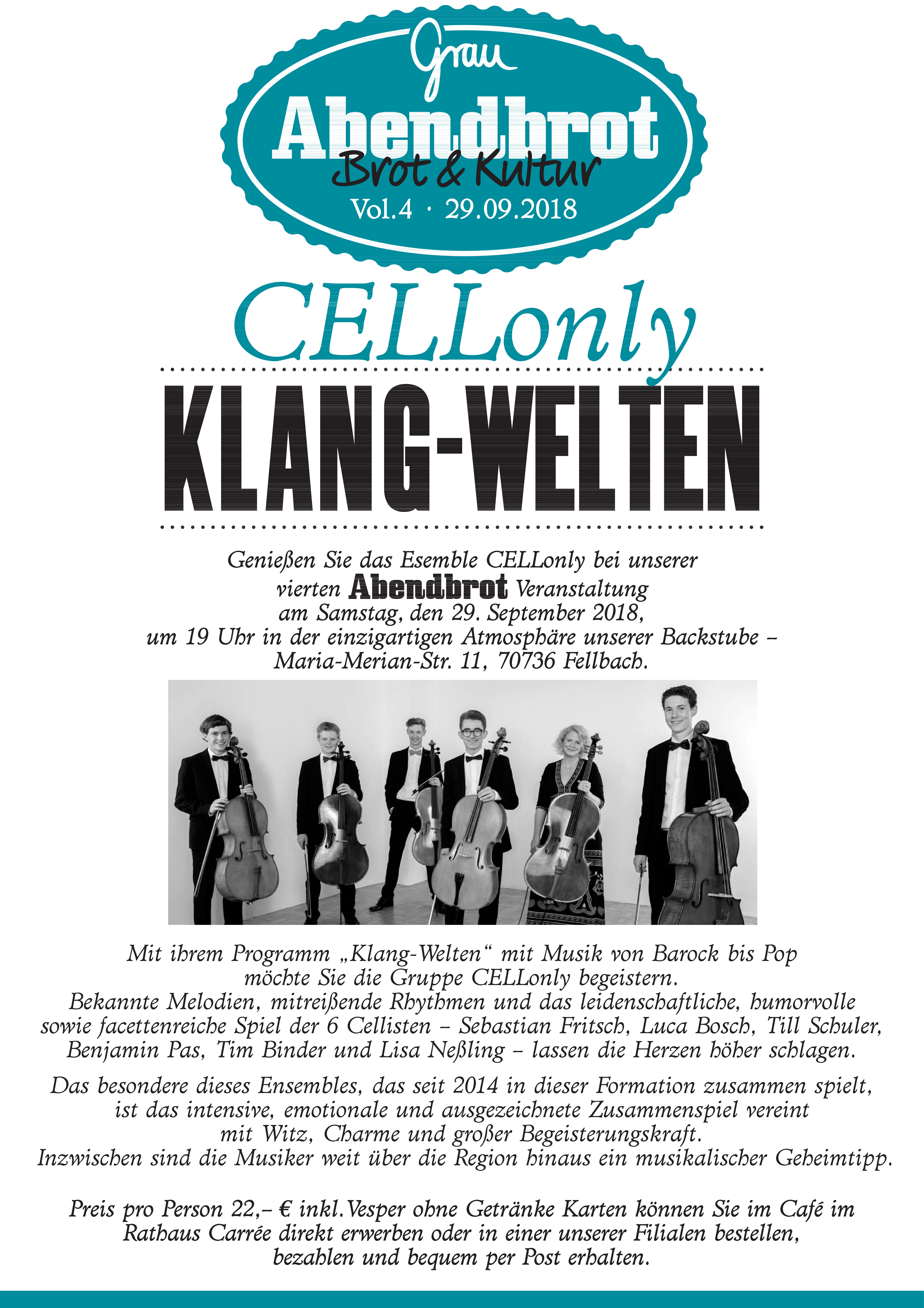 Unser Ensemble CELLOnly spielt am 29. September 2018 zwar nicht im Filum, aber vielleicht haben Sie Lust auf dieses besondere Konzert in besonderer Atmosphäre.