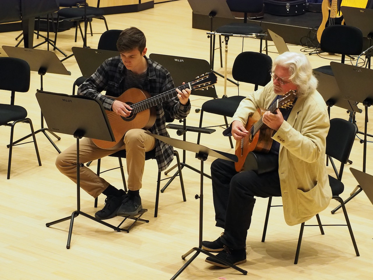 Musik von der Renaissance bis zum Jazz begeisterte das Publikum, das nahezu keinen Platz im FILUM unbesetzt lies. Das Projektensemble bestehend aus jungen Musiker*innen aus fast allen Gitarrenklassen sowie „Die AIJu´s“ und das Ensemble„Ruby Tuesday“, das in unterschiedlicher Besetzung seit über 25 Jahren besteht, führten die Zuhörer*innen durch Klangwelten von Antonio Vivaldis „Die vier Jahreszeiten“ bis Tango-Rhythmen aus Lateinamerika.