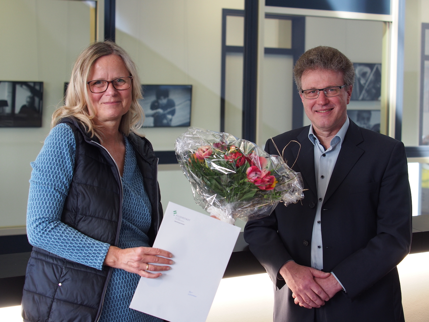 Die Stadt Filderstadt gratuliert Herrn Rolf Weinmann, der im FILUM als Lehrkraft für Akkordeon tätig ist, ganz herzlich zum 40-jährigen Dienstjubiläum. Amtsleiterin für Bildung, Kunst und Kultur Claudia Vöhl überreichte ihm hierzu die Urkunde des Oberbürgermeisters Christoph Traub und dankte ihm zusammen mit Musikschulleiterin Katrin Bleier für sein Engagement in den vergangenen Jahren.