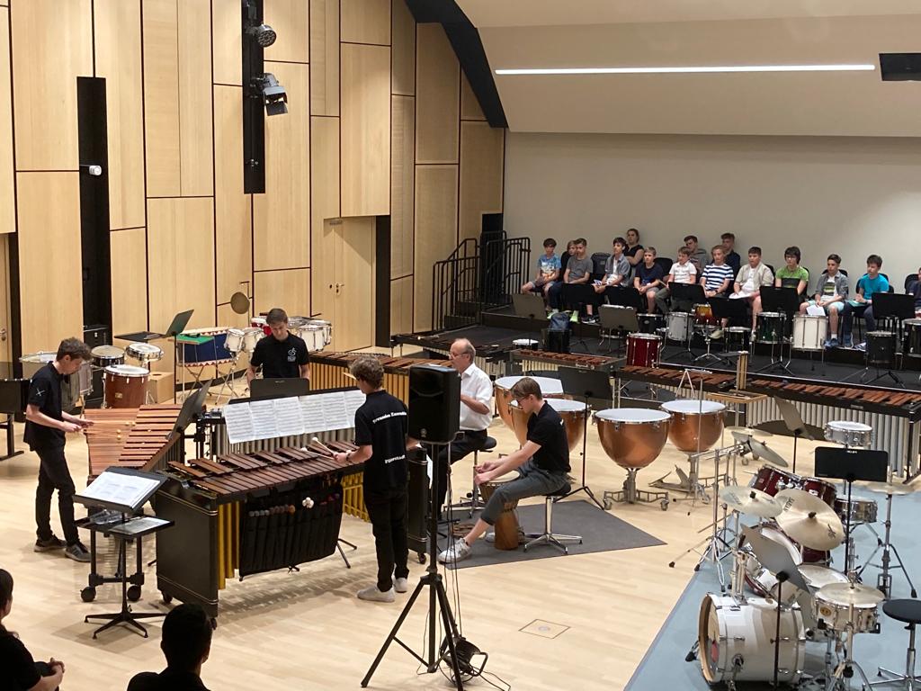 Am vergangenen Wochenende zeigte der Fachbereich Percussion in den beiden Jahreskonzerten sein Können. Die Sommerkonzerte standen dabei ganz im Zeichen von „Rhythmus pur“. Ein überwältigendes Sortiment an Schlaginstrumenten kam zum Einsatz und durfte vom Publikum bestaunt werden. Viele Schüler*innen zeigten in zwei abwechslungsreichen Konzerten, was auf verschiedenen Percussion-Instrumenten spielbar ist. Begeistert von der Vielfalt und Kreativität der jungen Musiker*innen belohnten die Besucher*innen den Fachbereich unter der Leitung von Uwe Arlt mit viel und langanhaltendem Beifall.