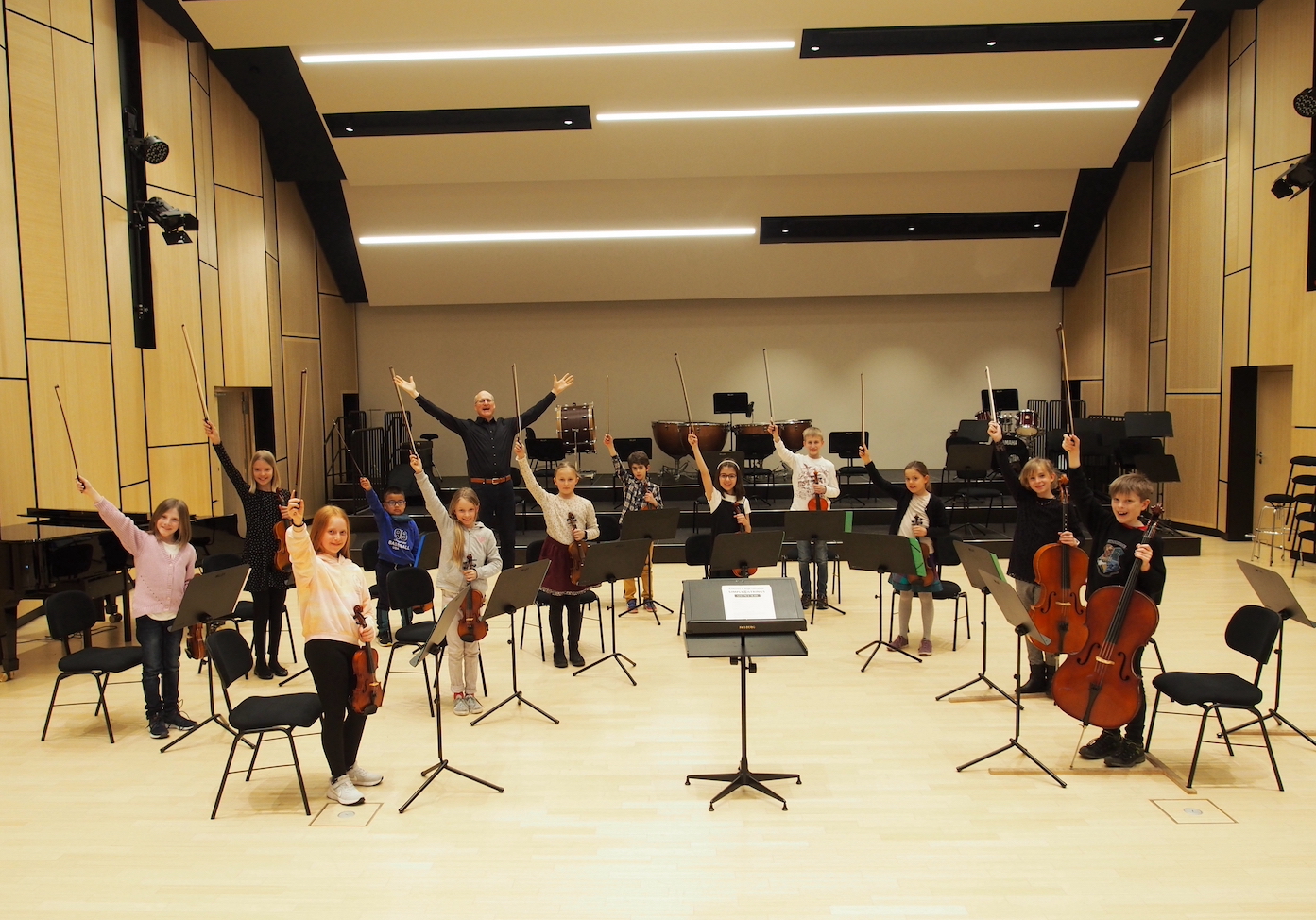 Im Mozart-Orchester werden erste Grundlagen im gemeinsamen Orchesterspiel gelegt. Dazu gehört richtiges Intonieren sowie das rhythmisch-harmonische Zusammenspiel.